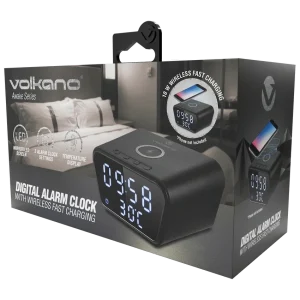 Volkano Awake Series Alarm Clock with Wireless Charging - Black