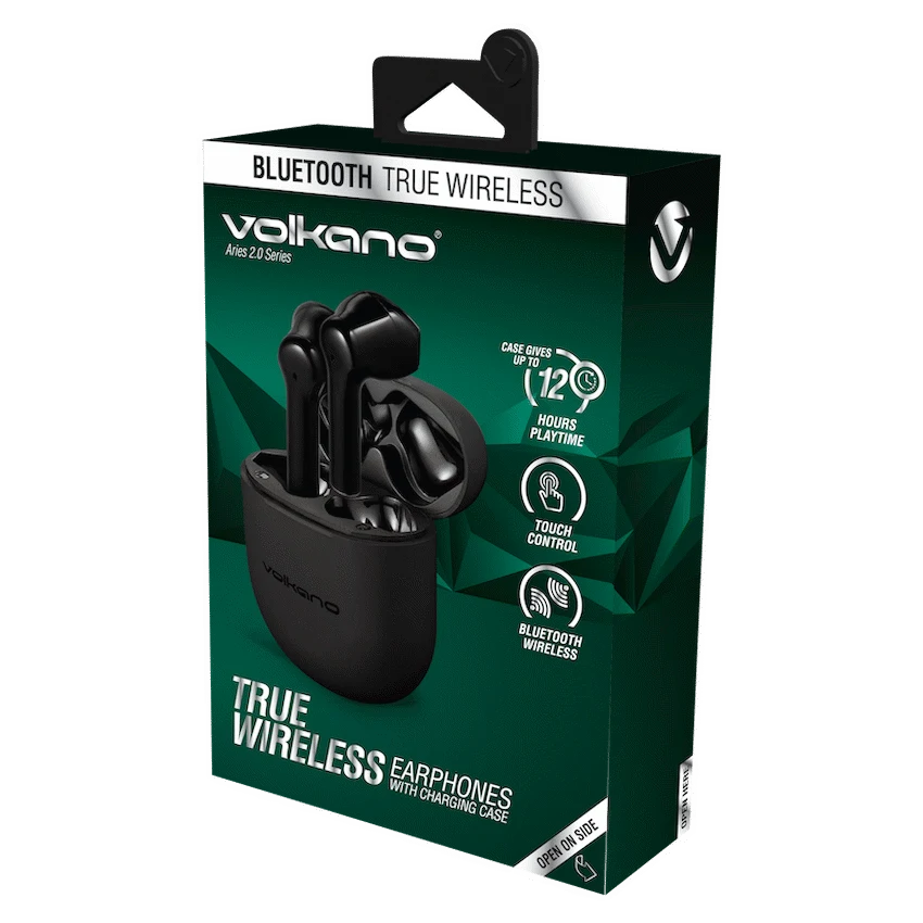 Volkano Aries 2.0 Series TWS Earphones + Charging Case – Black
