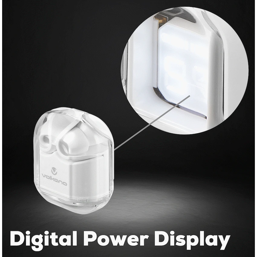 Volkano Crystalline Series TWS Earphone – White, Hardbox