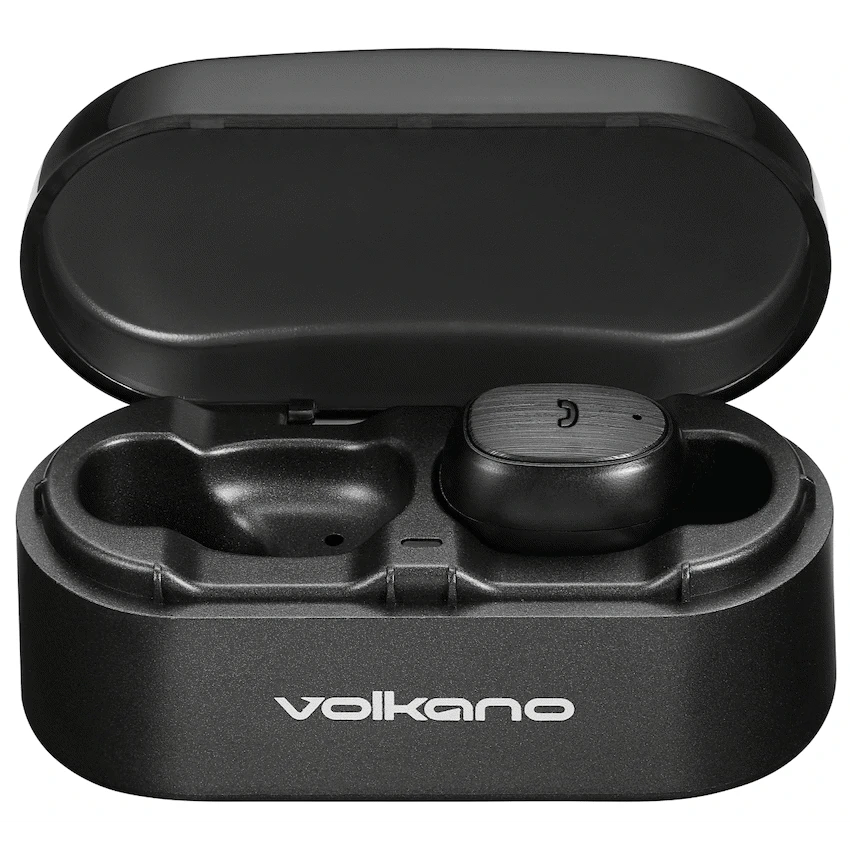 Volkano Virgo Series True Wireless Earphones – Black Siri / Google Assistant Metallic Charging Case 15 Hour Playtime with Case