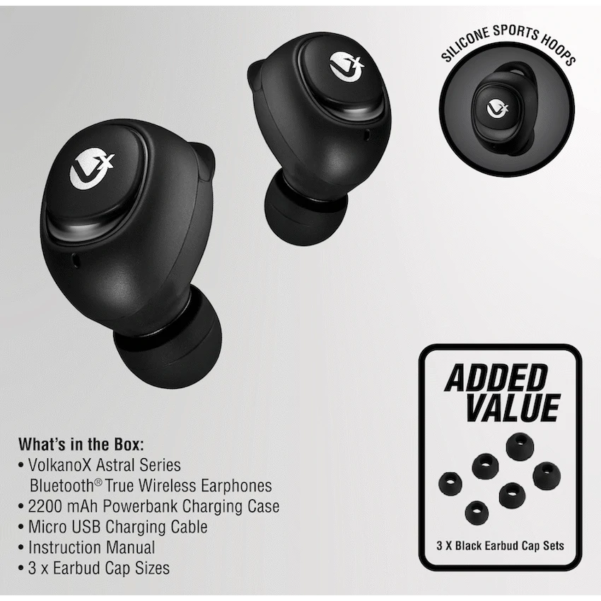 VolkanoX Astral Series True Wireless Earphones with Powerbank Charging Case – Black