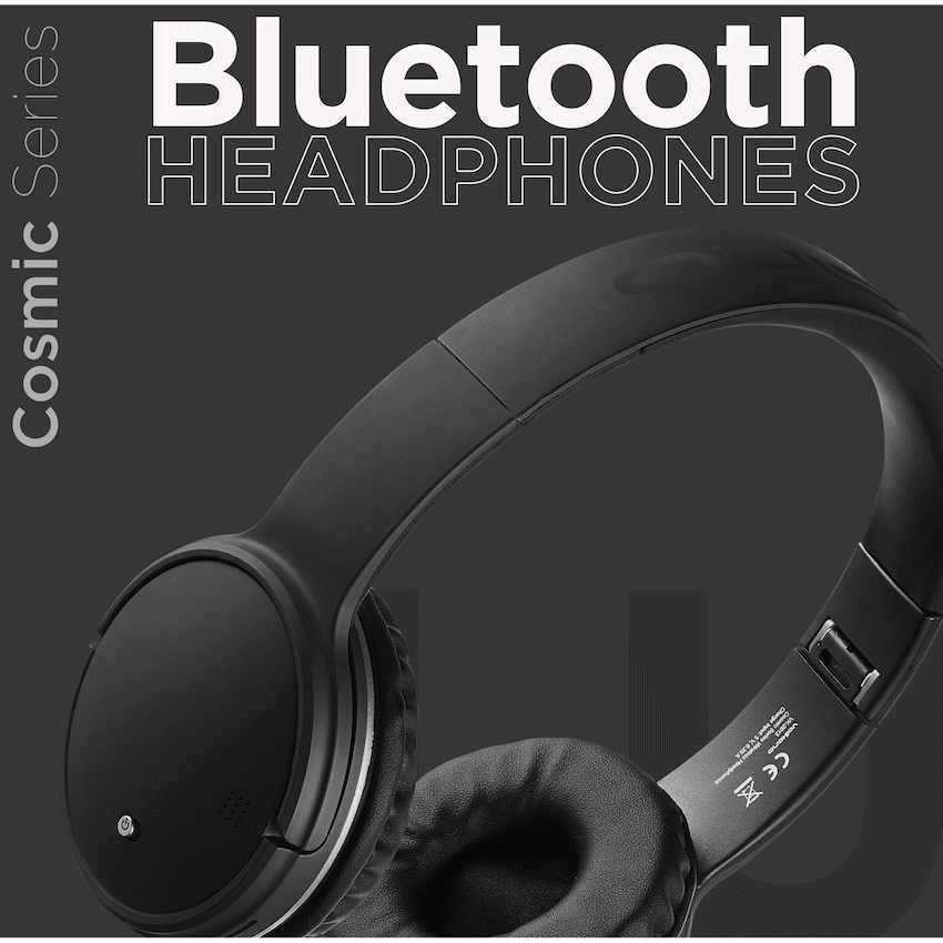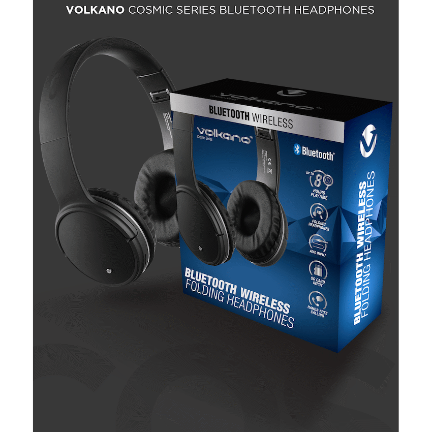 Introducing the Volkano Bluetooth Headphones – Cosmic Series in sleek Black.
