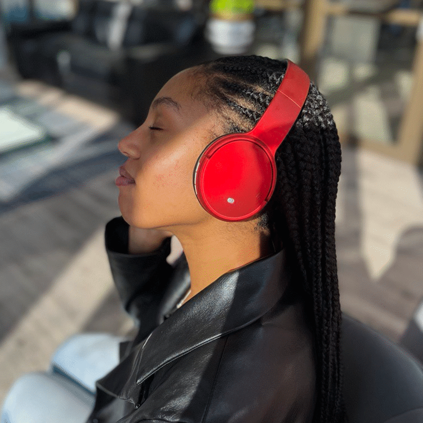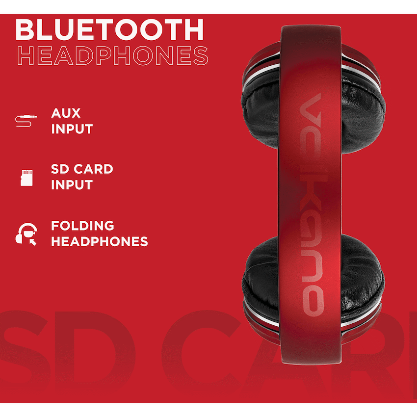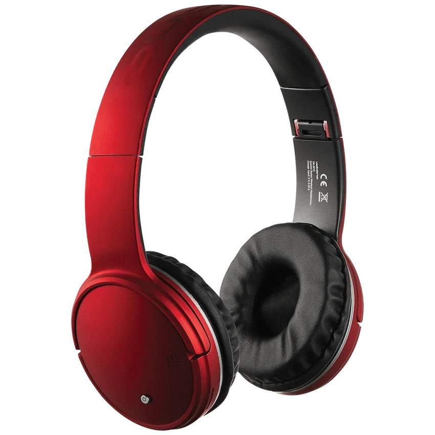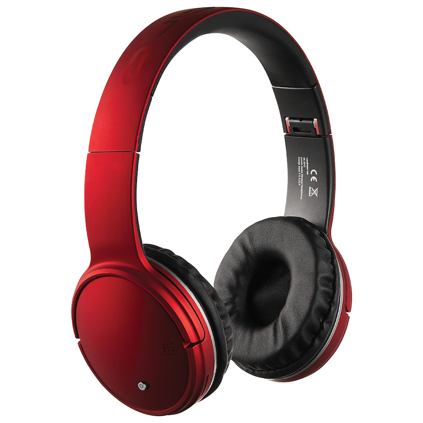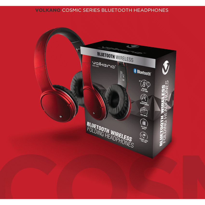 Introducing the Volkano Bluetooth Headphones – Cosmic Series in vibrant red.