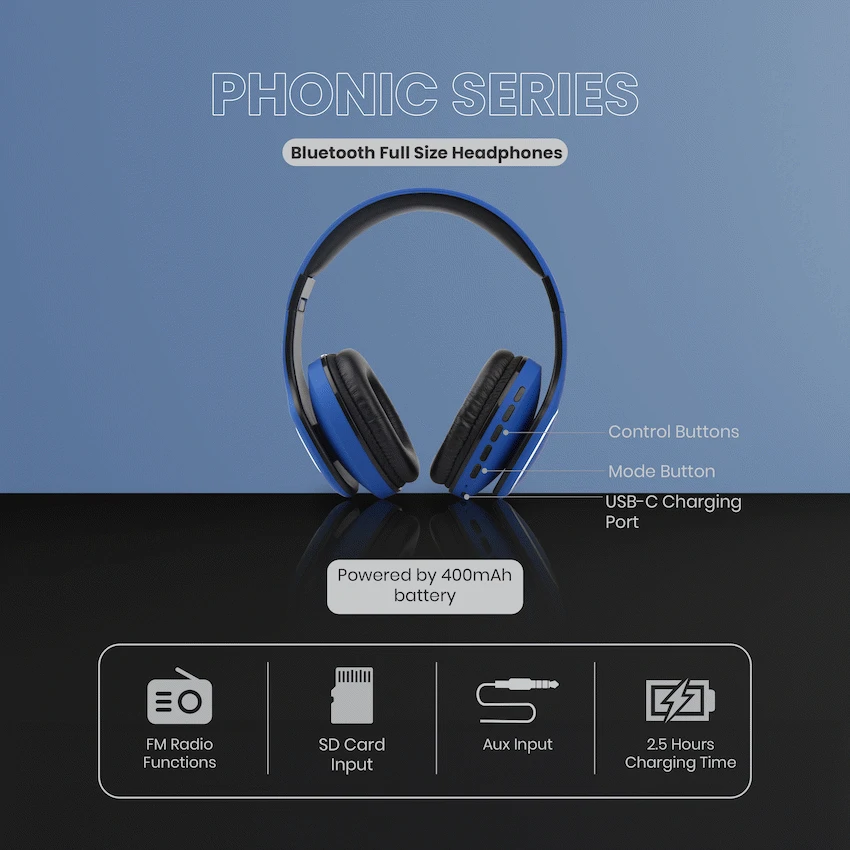 Experience freedom, flexibility, and full-featured sound with the Volkano Phonic Series Bluetooth Headphones. Designed for everyday audio lovers, these wireless headphones deliver up to 24 hours of battery life, making them perfect for long commutes, gym sessions, or focused workdays. Whether you’re streaming via Bluetooth, tuning into FM radio, or playing tracks directly from an SD card, you’re always in control of your listening experience.