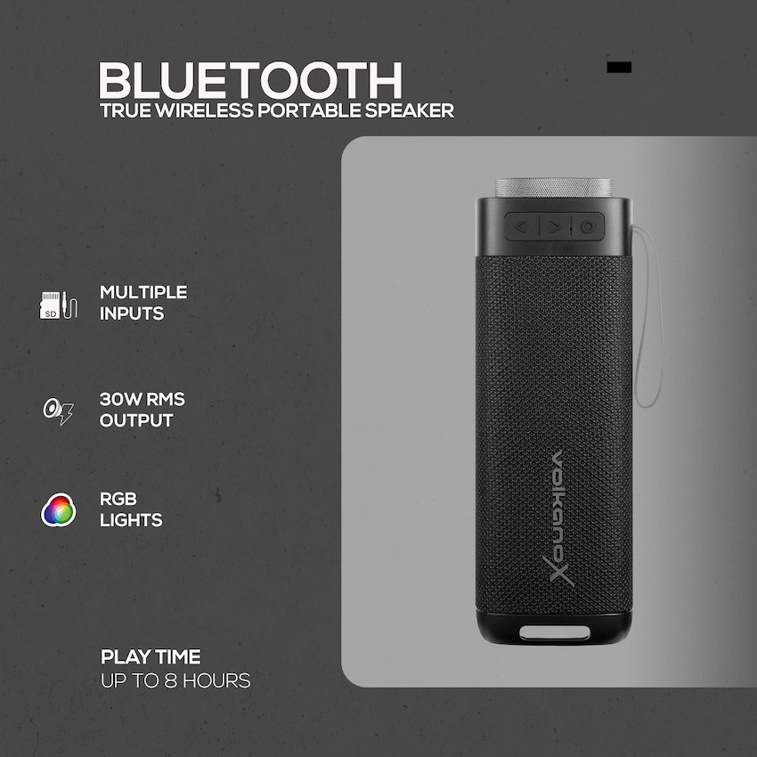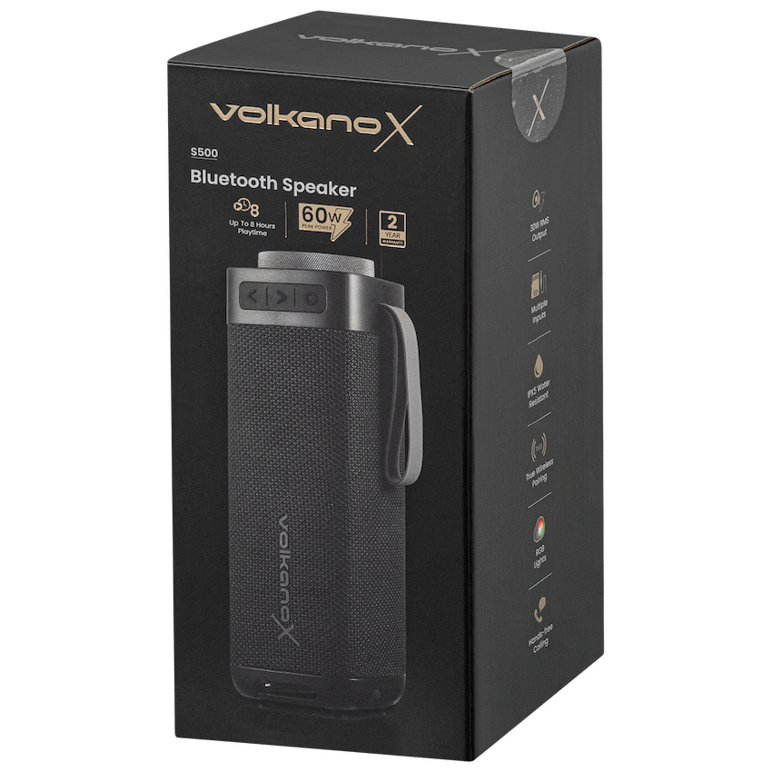 Take your music anywhere with the VolkanoX S500 Portable Bluetooth Speaker—built for powerful sound and modern convenience. With 30W RMS output (60W peak power), this portable speaker delivers room-filling audio with deep bass, perfect for parties, outdoor gatherings, or everyday use.