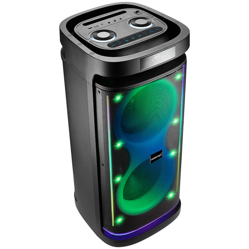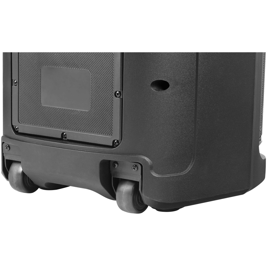 Engineered for portability, the speaker includes wheels and a carry handle so you can roll the party wherever you go. Add some flair with RGB lighting effects, and enjoy seamless connectivity via Bluetooth, USB, SD card, AUX, and even FM radio. The True Wireless Pairing feature lets you wirelessly link two speakers for double the impact.