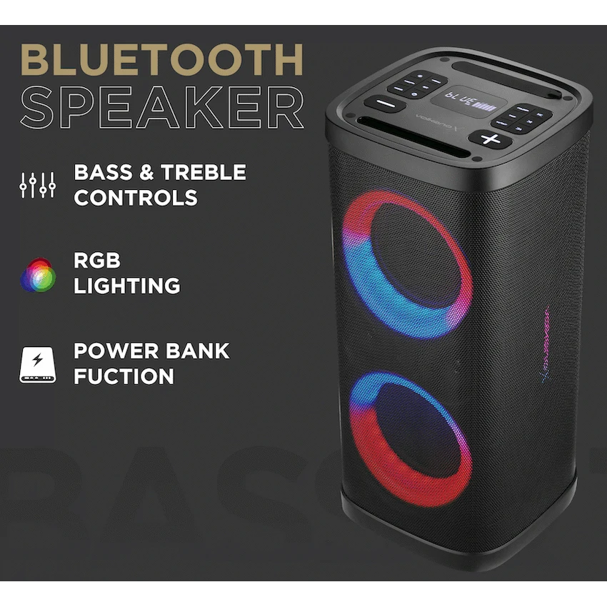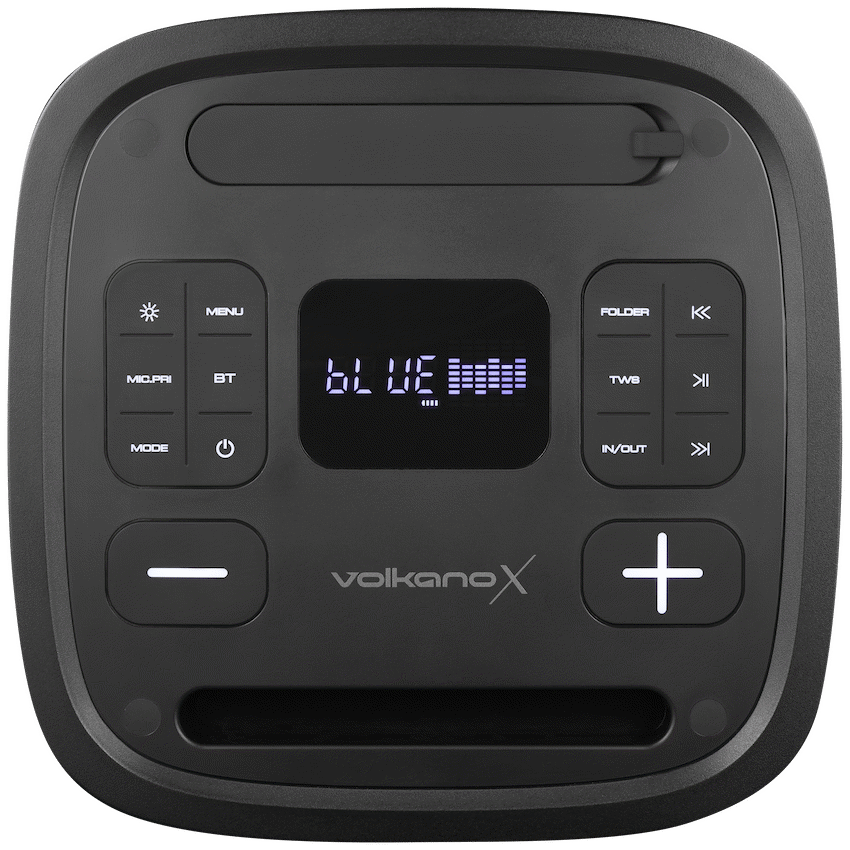 VolkanoX VXP300 Dual 6.5″ Party Speaker – Black “Li-Ion, 7.4V, 3600mAh Subwoofer 2 x 25W/6.5’’ + Tweeter 2 x 5W/2.5” 1.5 – 5 hours playtime 60W RMS / 180W Peak”