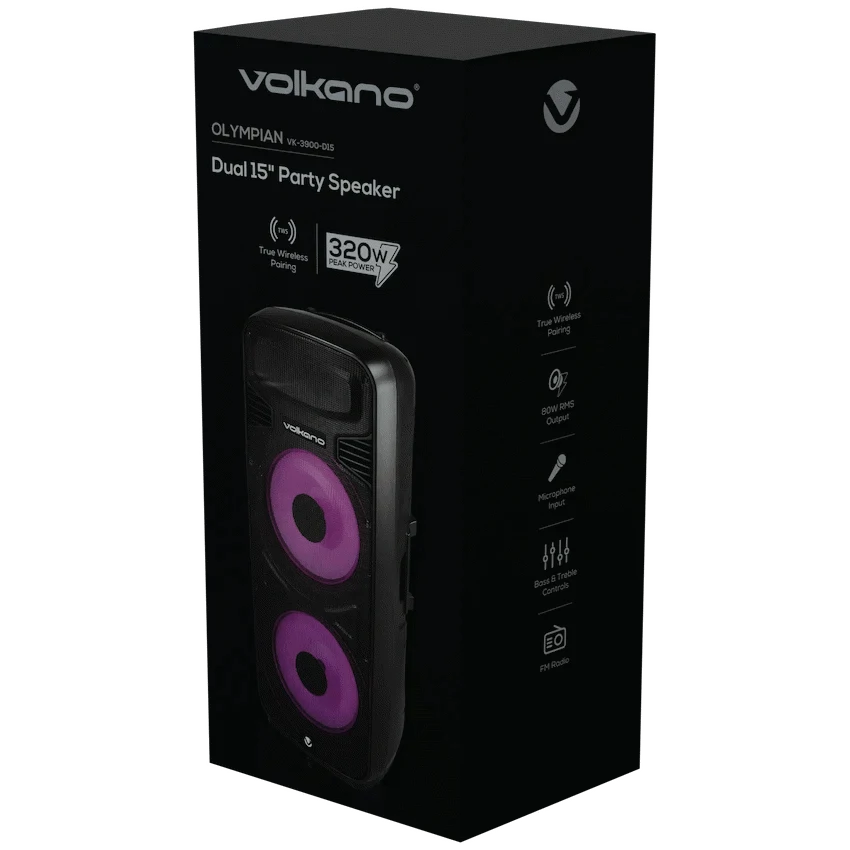 Volkano Olympian Series Dual 15″ Party Speaker – Black