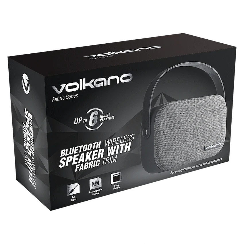 Volkano Fabric Series Bluetooth Speaker with Fabric Trim – Dark Grey
