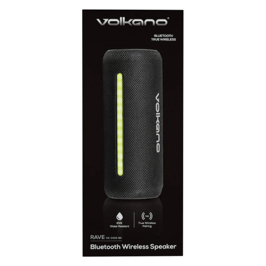 Introducing the Volkano Rave Series Portable Bluetooth Speaker, a powerhouse of sound and style designed for those who appreciate top-notch performance and versatility. This speaker boasts impressive features that make it a must-have for any music enthusiast.