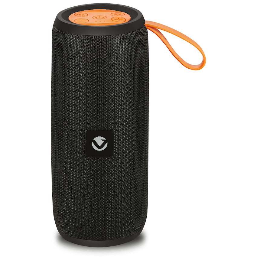 Introducing the Volkano Bluetooth Speaker Stun Series in sleek black, the ultimate companion for your music needs.