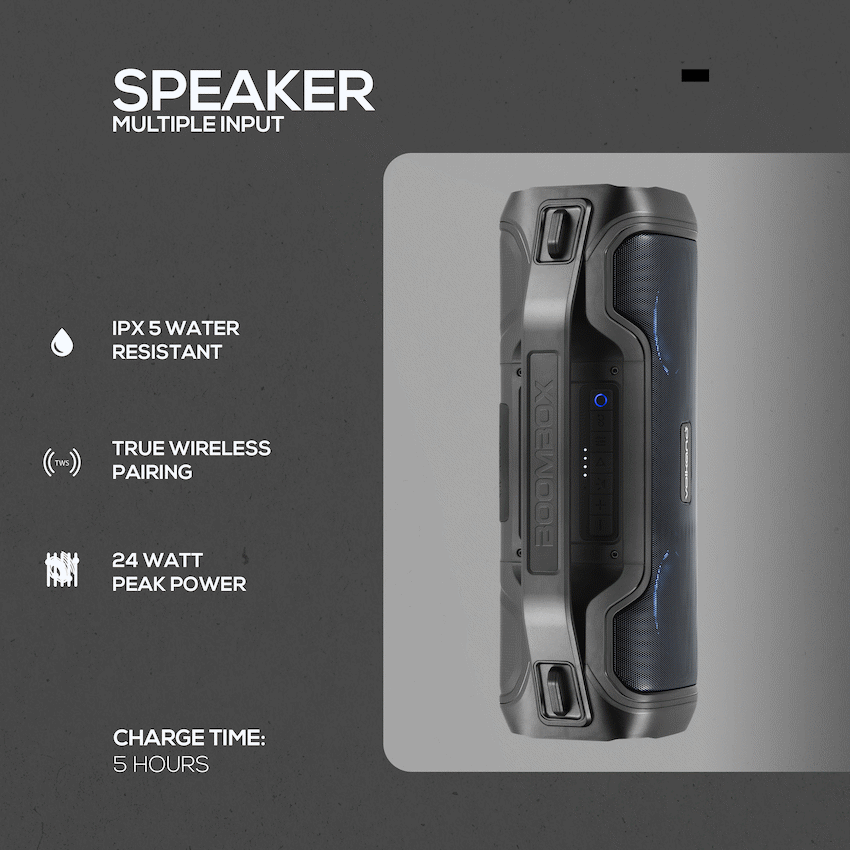 With up to 8 hours of playback time and true wireless technology, the VolkanoX Adder series is taking your listening experience to a whole new level. Connect two VolkanoX Adder series speakers together to experience True Stereo Sound. Listen to music via Aux or SD card inputs or simply enjoy FM radio. This durable portable speaker packs up to 85 dB and is IP x 5 Water resistant. Complete with a speakerphone and 5V/1A Powerbank output, this Bluetooth Speaker is the perfect companion for outdoor adventures.