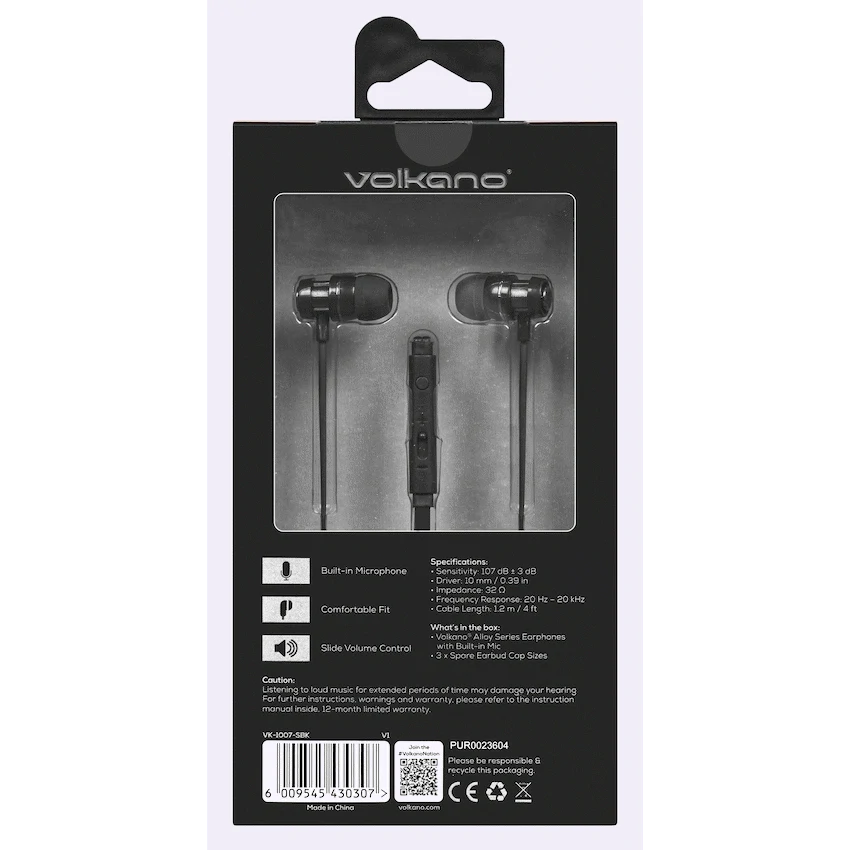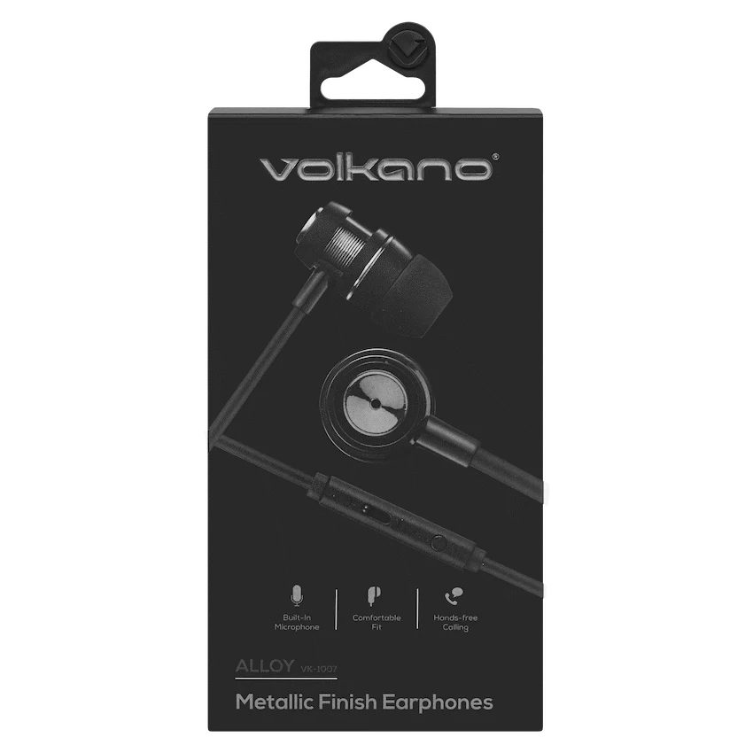 Volkano Alloy Series Earphones, with Mic – Solid Black