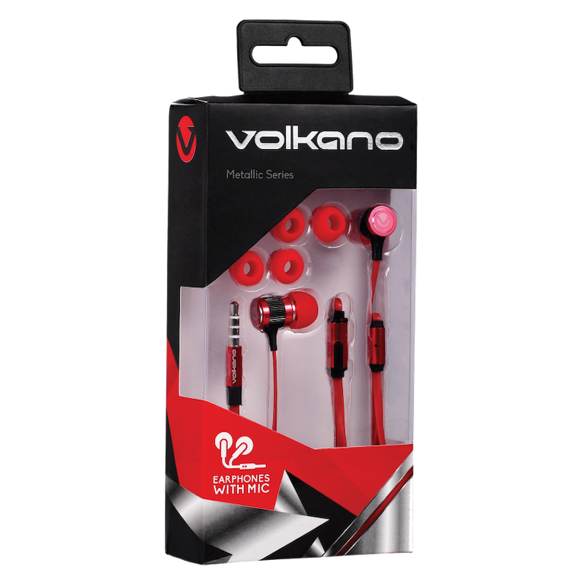 Volkano Earphones with Mic -METALLIC SERIES – Red