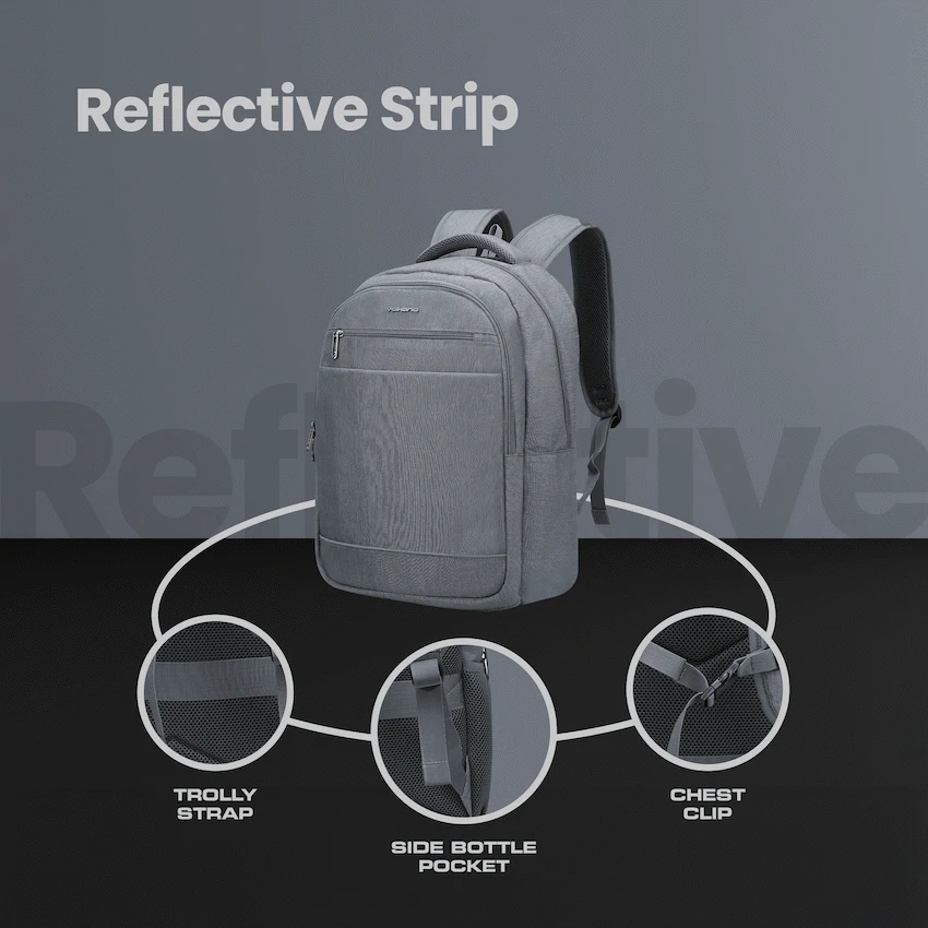 A high-quality laptop backpack with a padded compartment that fits laptops up to 15.6”. Multiple internal and external pockets provide ample storage for organizing chargers, cables, power banks, keys, wallets, water bottles, notebooks, documents, and other daily essentials. Made with durable, water-resistant materials and reinforced stitching for long-lasting use. Features adjustable padded shoulder straps, breathable back padding, a top handle for carrying, side handles for easy lift, and a secure zipper closure for added protection during travel or daily use.