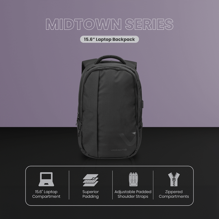 A high-quality laptop backpack with a padded compartment that fits laptops up to 15.6”. Multiple internal and external pockets provide ample storage for organizing chargers, cables, power banks, keys, wallets, water bottles, notebooks, documents, and other daily essentials. Made with durable, water-resistant materials and reinforced stitching for long-lasting use. Features adjustable padded shoulder straps, breathable back padding, a top handle for carrying, side handles for easy lift, and a secure zipper closure for added protection during travel or daily use.