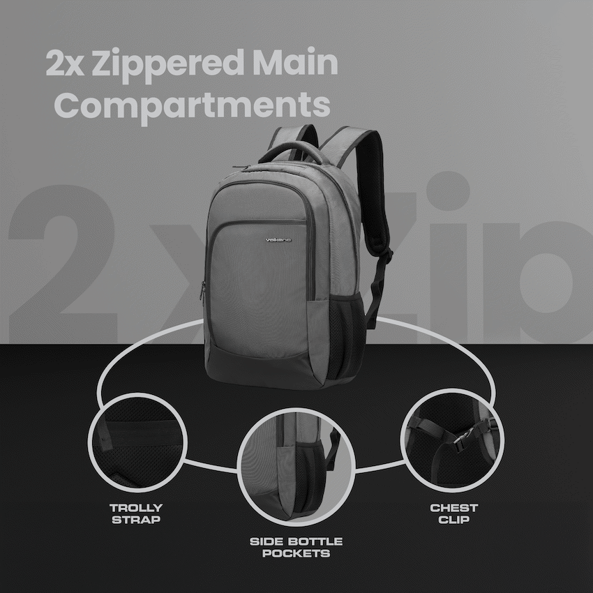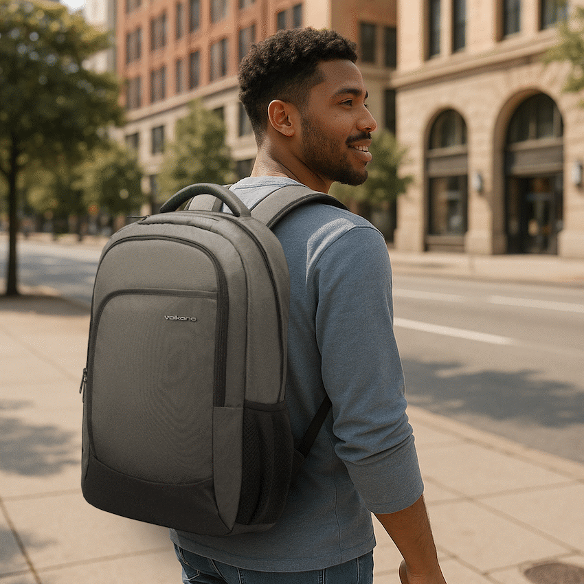 A high-quality laptop backpack with a padded compartment that fits laptops up to 15.6”. Multiple internal and external pockets provide ample storage for organizing chargers, cables, power banks, keys, wallets, water bottles, notebooks, documents, and other daily essentials. Made with durable, water-resistant materials and reinforced stitching for long-lasting use. Features adjustable padded shoulder straps, breathable back padding, a top handle for carrying, side handles for easy lift, and a secure zipper closure for added protection during travel or daily use.