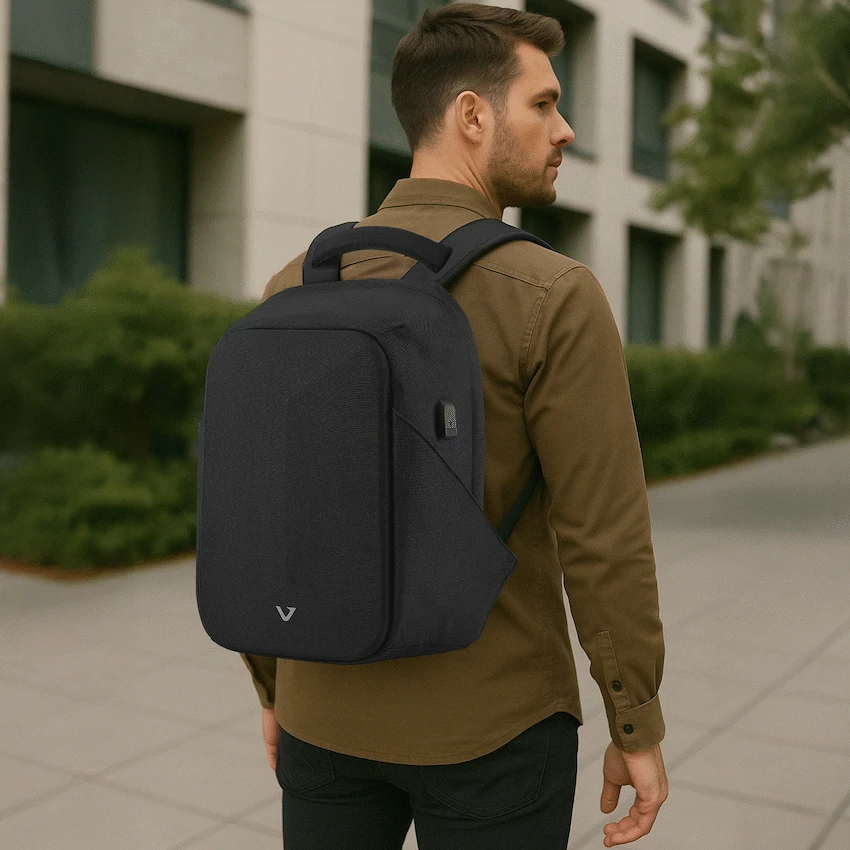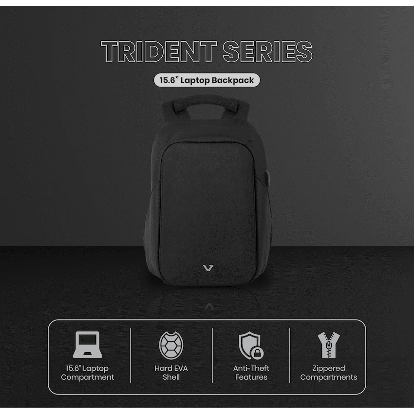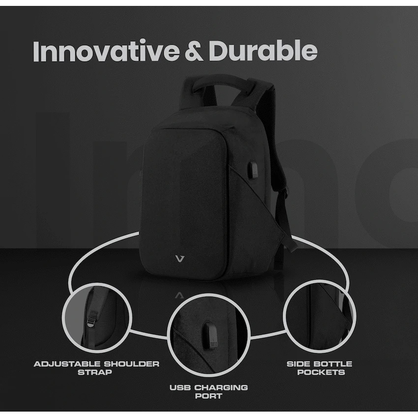A high-quality laptop backpack with a padded compartment that fits laptops up to 15.6”. Multiple internal and external pockets provide ample storage for organizing chargers, cables, power banks, keys, wallets, water bottles, notebooks, documents, and other daily essentials. Made with durable, water-resistant materials and reinforced stitching for long-lasting use. Features a hard moulded EVA front panel, adjustable padded shoulder straps, breathable back padding, a top handle for carrying, side handles for easy lift, and a secure zipper closure for added protection during travel or daily use.