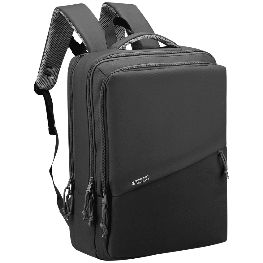 A high-quality laptop backpack with a padded compartment that fits laptops up to 15.6”, designed to accommodate all your business and overnight packing needs, whilst fitting neatly under the seat in front of you on an aeroplane. Multiple internal and external pockets provide ample storage for organizing chargers, cables, power banks, keys, wallets, water bottles, notebooks, documents, and other daily essentials. Made with durable, water-resistant materials and reinforced stitching for long-lasting use. Features adjustable padded shoulder straps, breathable back padding, a top handle for carrying, side handles for easy lift, and a secure zipper closure for added protection during travel or daily use. Large Capacity Water-resistant outer fabric 3 main compartments 17.3” Laptop compartment Large compartment for overnight goods Wet & Dry compartment USB Charging port Wide & padded shoulder straps Ultra padded & breathable back Adjustable chest clip