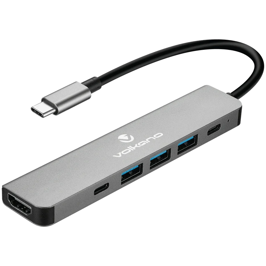 Volkano Expand series 6-in-1 Type-C Hub Convert your Type-C port into a HDMI Video output plus a data hub Add 3 USB data ports to your computer Charge and transfer data via USB-C