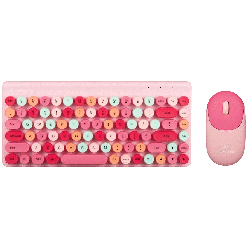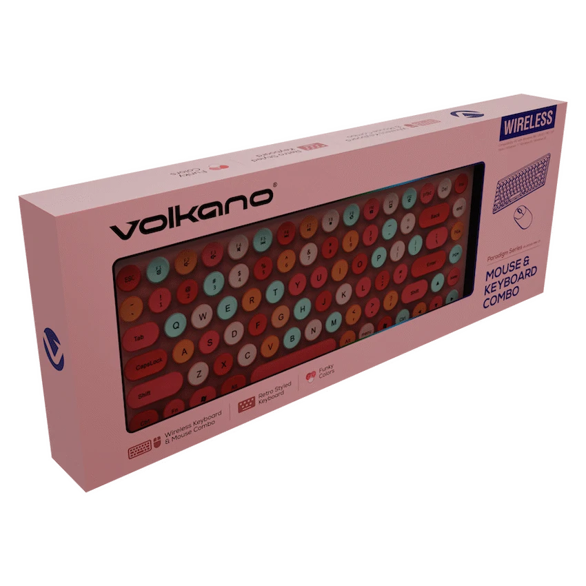 Volkano Paradigm Series Mouse and Keyboard combo – Pink 2.4 GHz Connection Funky Colours 10m Wireless Range 1200 DPI Low Profile Design