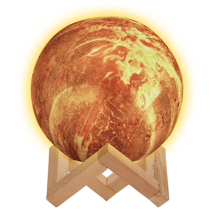 Stylish multi-colour Mars moon lamp with wood base – no plugs needed