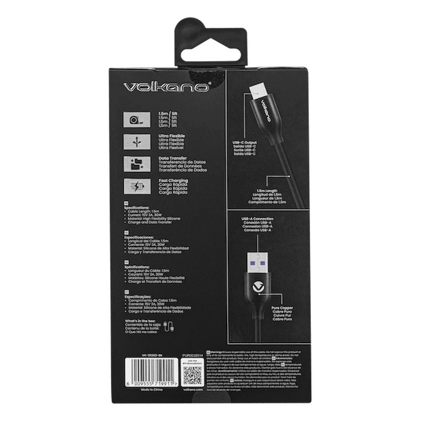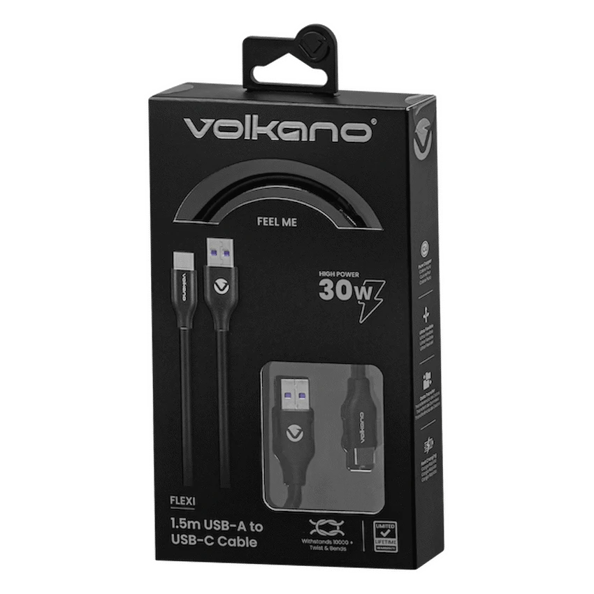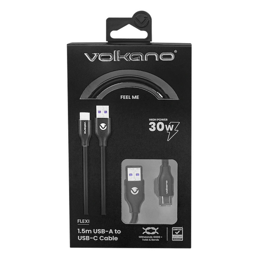 Volkano Flexi Series USB to Type-C 1.5M 30W- Black
