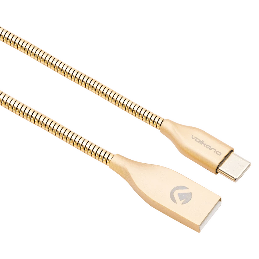 Volkano Iron Series Round Metallic Spring Type-C Cable 6ft – Champagne Gold