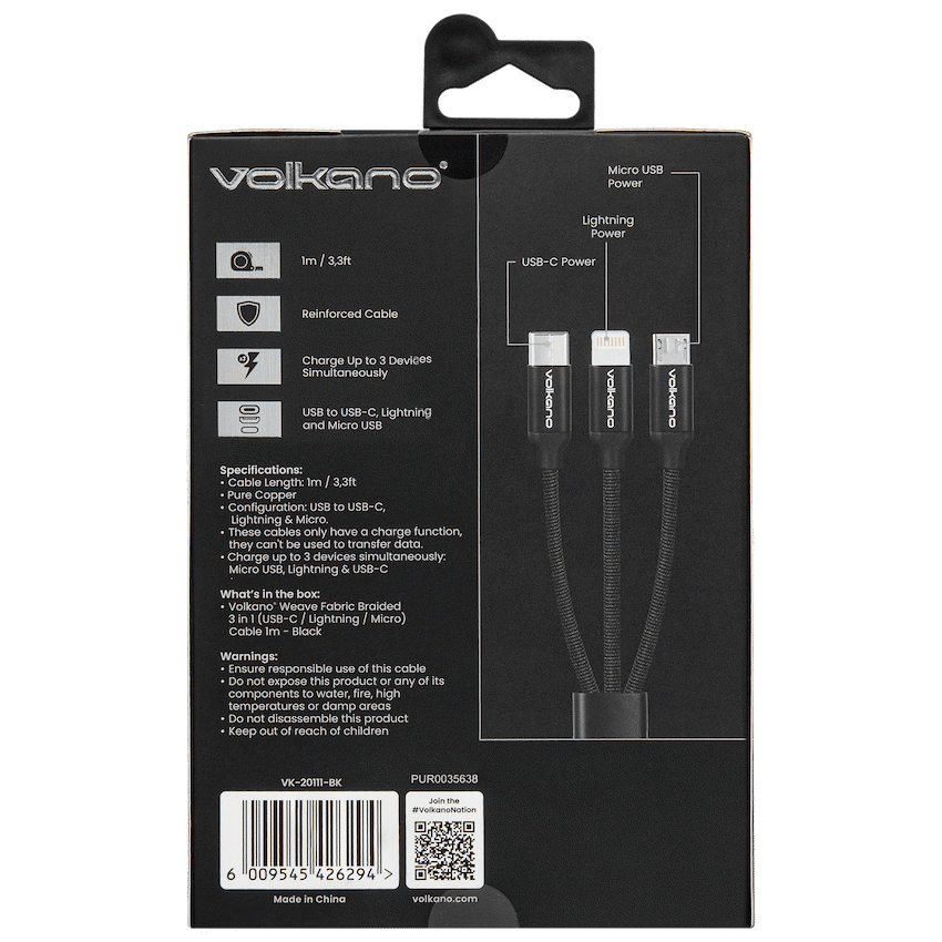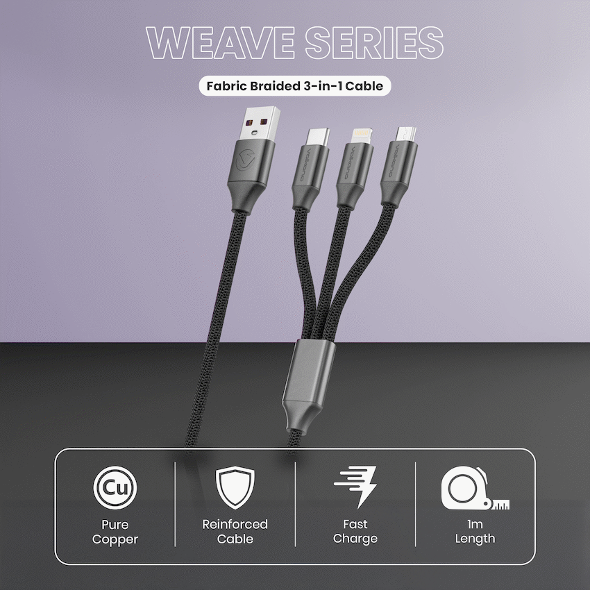 Reinforced cable with a special weaved design for increased durability and reliability.