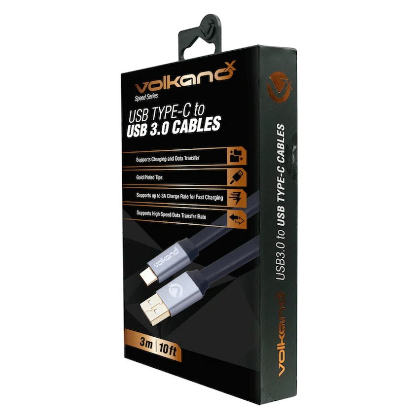 VolkanoX Speed Series USB3.0 to USB Type-C Cable 30cm – Flat Black