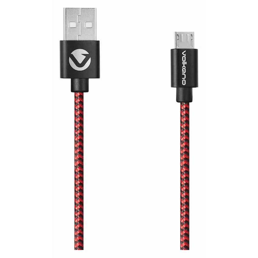 Volkano Braids Series Nylon Braided Micro USB Cable 1.2m – Black & Red