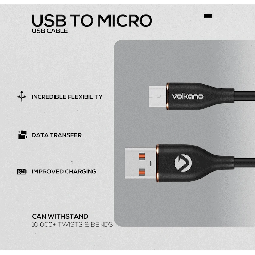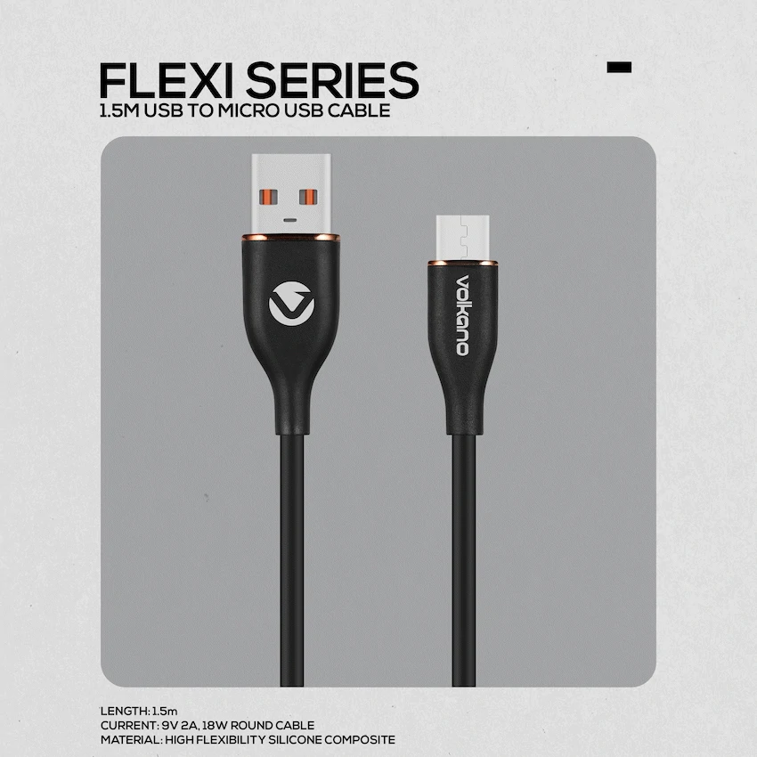 Volkano Flexi Series USB to Micro USB 1.5m 18w – Black