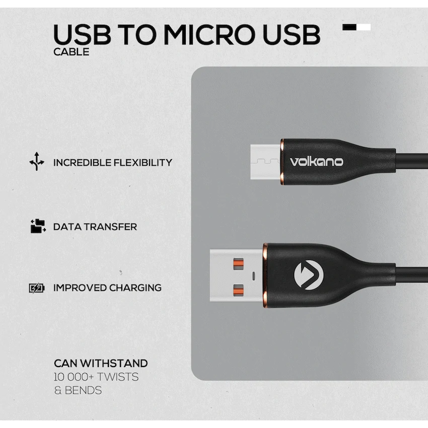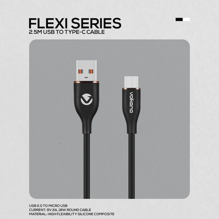 Volkano Flexi Series USB to Micro USB 2.5m 18w – Black