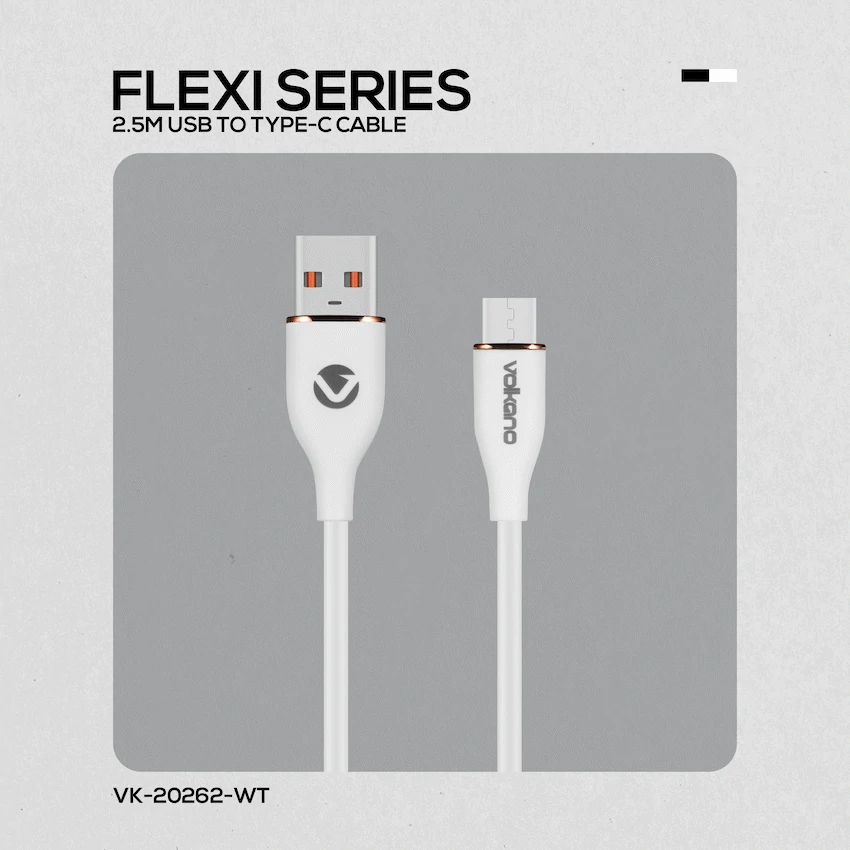 Volkano Flexi Series USB to Micro USB 2.5m 18w – White