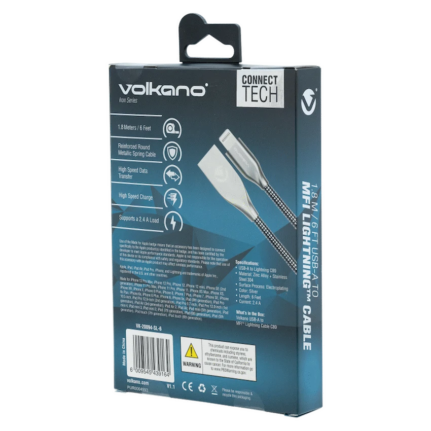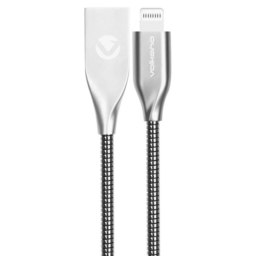 Volkano Iron Series Round Metallic Spring MFI Lightning Cable 6ft – Silver