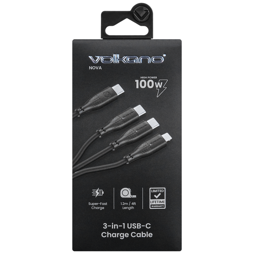 Streamline your charging kit with this USB-C to 3-in-1 cable—two USB-C connectors plus Lightning from a single USB-C port. Perfect for families, shared desks and travel, it reduces clutter while powering multiple devices with one tidy lead. Power delivery is clearly defined. When used individually, USB-C1 supports up to 20V/5A (100W) for high-power notebooks, tablets and phones; USB-C2 supports up to 5V/2A (10W); and Lightning supports up to 9V/3A (27W) (device/charger dependent). For simultaneous charging, the total shared distribution is specified as C1 up to 60W + Lightning up to 27W + C2 up to 5W—so your main device gets priority power while the others top up. This is a charge-only cable (no data), keeping expectations clear and setup simple. Three Outputs, One Cable – USB-C input to 2× USB-C + 1× Lightning High Output on C1 – Up to 20V/5A (100W) when used solo Defined Shared Power – C1 up to 60W + Lightning up to 27W + C2 up to 5W (simultaneous) Charge-Only Design – Purpose-built for power; no data transfer Everyday Ready – 1.2 m length with flexible, durable TPE jacket