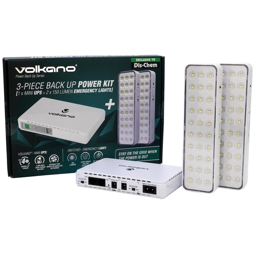 Volkano Back Up Power Kit, Mini UPS + 2 150 Lumen Emergency