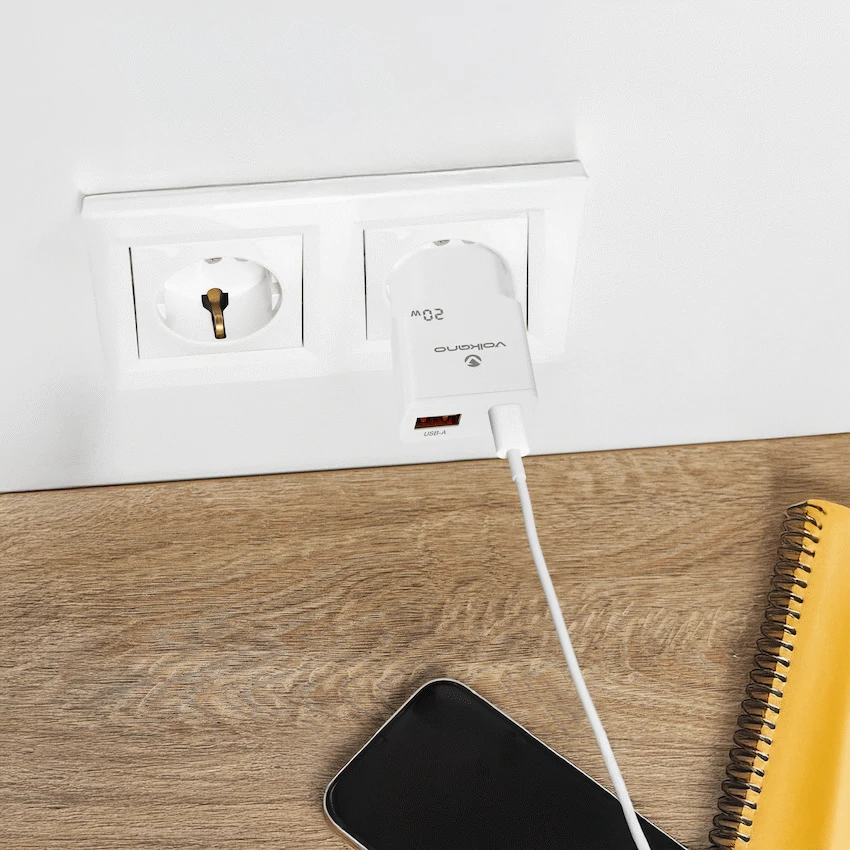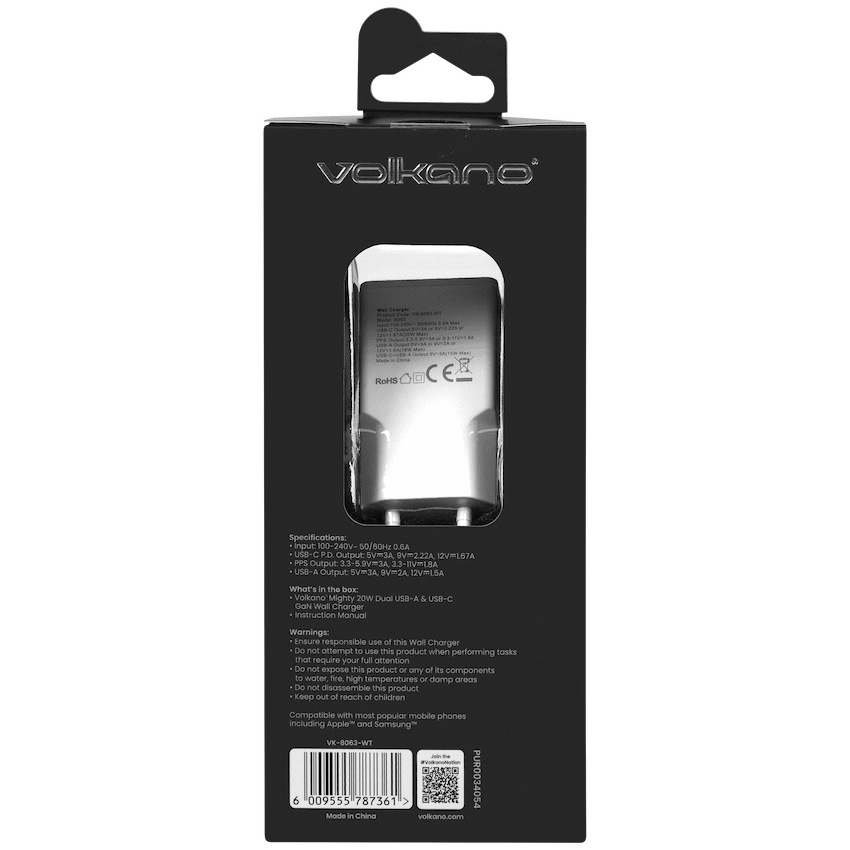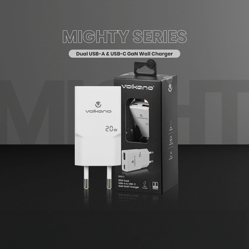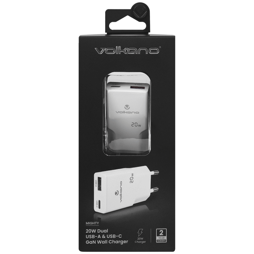 The Volkano Mighty Series Wall Charger is the ideal solution for today’s on-the-go lifestyle. Designed with cutting-edge GaN technology, this compact charger delivers powerful and reliable performance in a sleek, travel-friendly form. Whether you’re charging your smartphone, tablet, or USB-C accessories, the dual-port output ensures you can power two devices simultaneously without compromising speed or efficiency.
