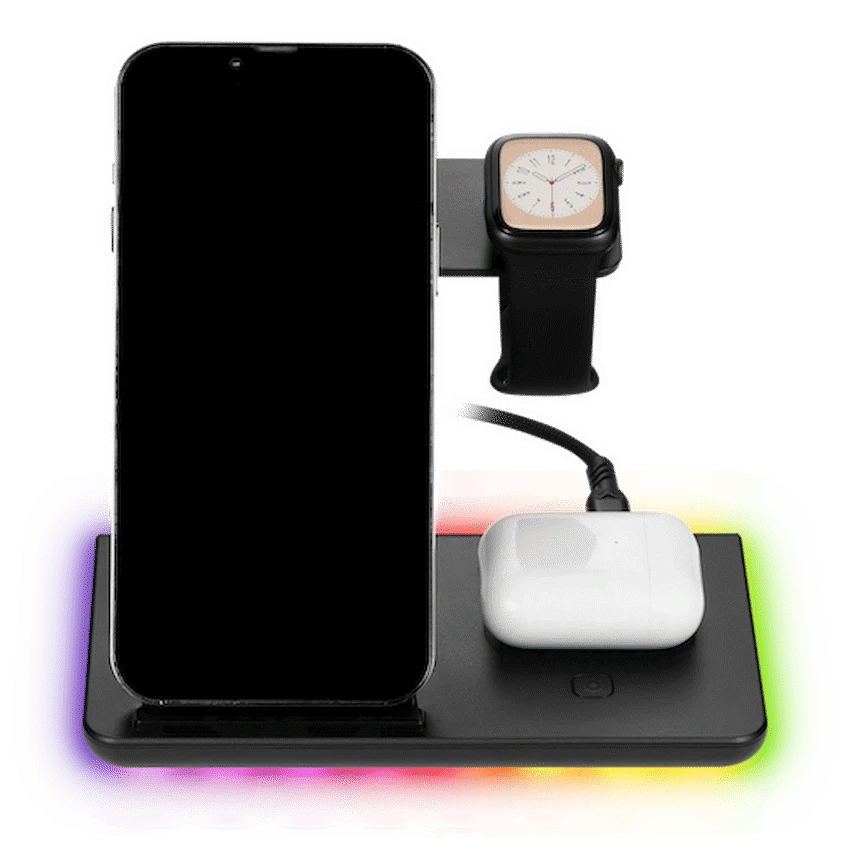 Volkano Versa Series 4-in-1 Wireless Charger with nightlight. RGB Lighting Wireless charge pad for Apple phone, watch and pods and other brands supporting wireless charging