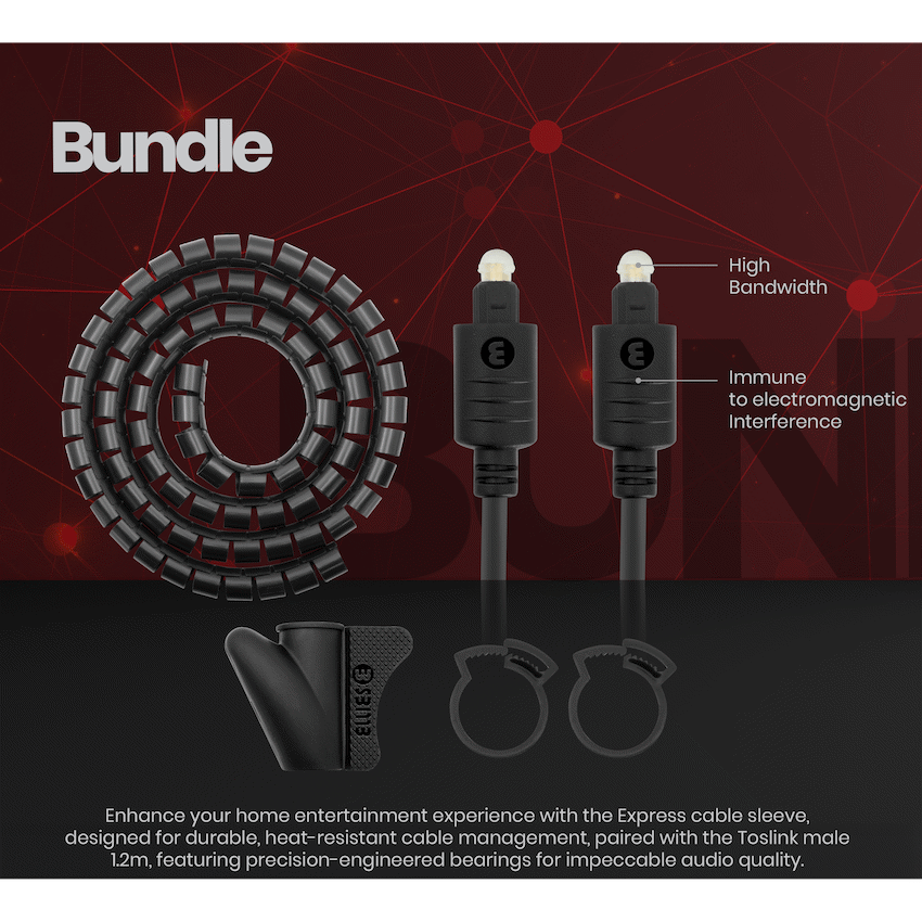 Volkano 1.2m & 3m Toslink Cables and 1.5m 20mm Express Cable – Bundle