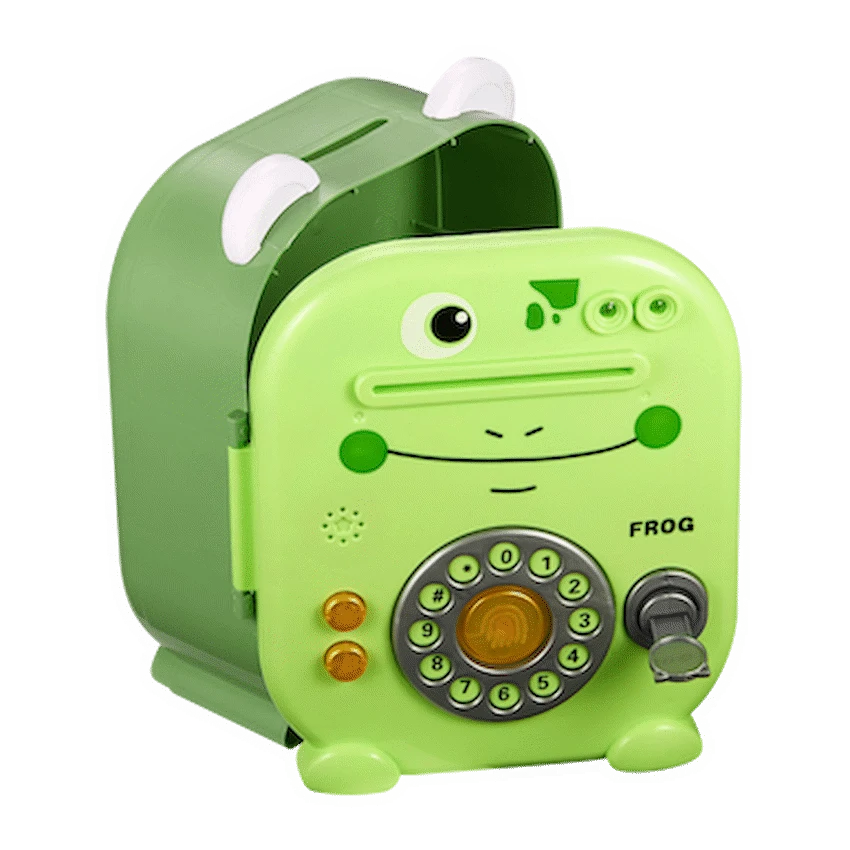 Volkano Kids Frog Series Money Saving Vault – Green Hand-Eye Coordination Pin Code Keypad Sound Effects Battery Powered Fingerprint Key Accepts Coins & Notes