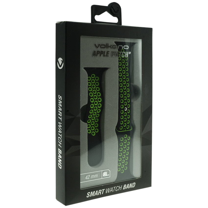 Volkano Smart Watch Band – Sport Silicone – iWatch 42mm -Black and Green S/L
