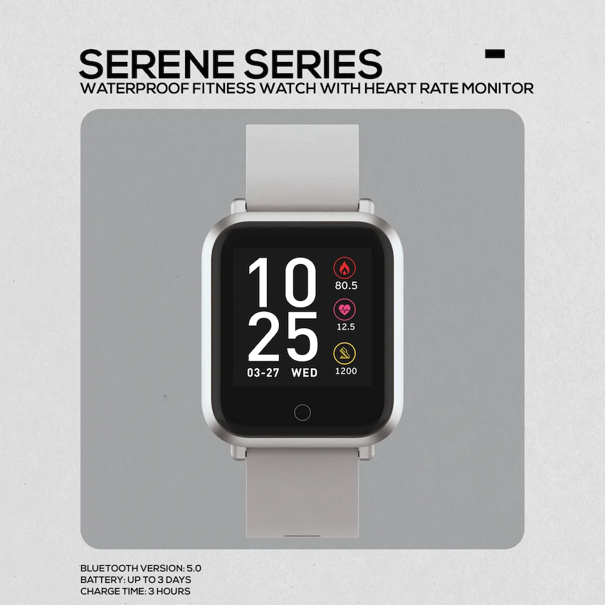 Compatible with Android & Apple, the Serene Series Fitness Smart Watch features a Heart Rate Monitor, Cellphone Notifications & a Pedometer. Water and dust resistant with a hypo-allergenic strap, it’s ready to join you on your workouts and activities.