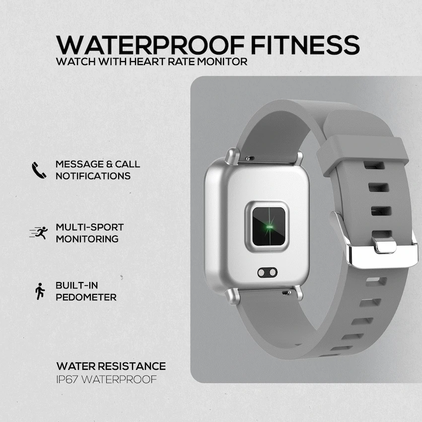 Fitness Smart Watch for men or women that supports Apple & Android smartphones. Features include a Heart Rate Monitor, Cellphone Notifications, Pedometer & Water Resistance.