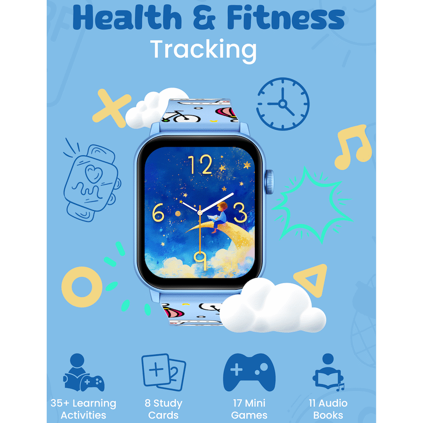 The Volkano Fizz Kids Watch offers all the functionality of a fitness tracking smart watch plus several additional functions appealing to children up to the age of 10 years. These include multiple audio books, study cards and fun games.