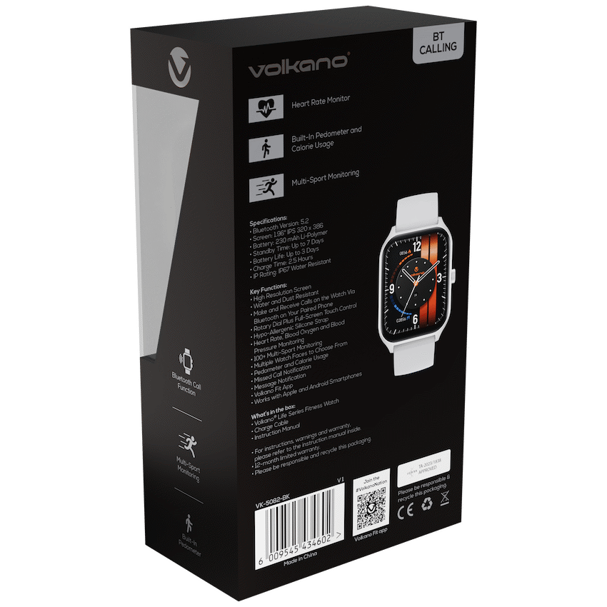 Comfort meets function with a hypo-allergenic silicone strap, and the watch pairs easily with both Android and Apple devices via the Volkano Fit App for easy syncing and fitness tracking.