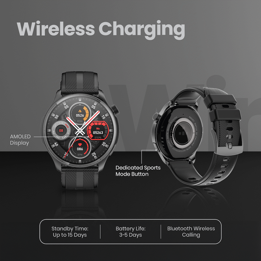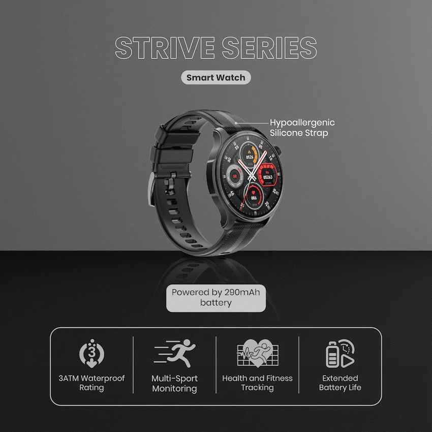 Volkano Strive Smartwatch with Wireless Charging 1ATM Waterproof Rating Bluetooth Wireless Calling Multi-sports Monitoring Health and Fitness Tracking Wireless Charging