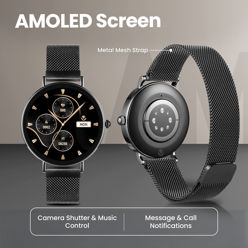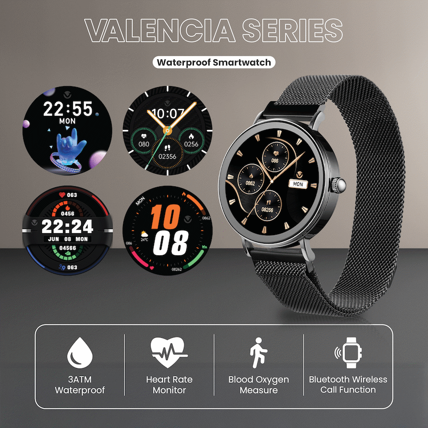 Stay stylish and connected with the Volkano Valencia Series Ladies Smart Watch, designed to balance fashion with smart technology. Perfect for active lifestyles, it offers 100+ multi-sport monitoring modes, giving you detailed insights into workouts and fitness progress. Stay in touch on the go with Bluetooth wireless calling and receive message and call notifications right on your wrist. With built-in voice assistant, you can manage tasks hands-free, while camera shutter and music control features let you snap photos and manage playlists without reaching for your phone. The Valencia Series also prioritises wellness. It includes a heart rate monitor, blood oxygen sensor, pedometer, and calorie tracker, so you can keep track of daily activity and overall health with ease. Whether for the office, gym, or a night out, this smartwatch blends elegant design with practical features to keep you connected and motivated. 100+ Multi-sport Monitoring Bluetooth Wireless Calling Voice Assistant Message & Call Notifications Camera Shutter & Music Control Heart Rate and Blood Oxygen Monitor Pedometer and Calorie Tracker