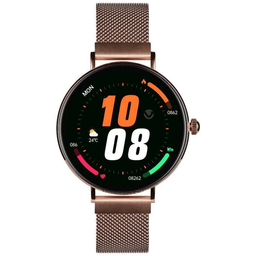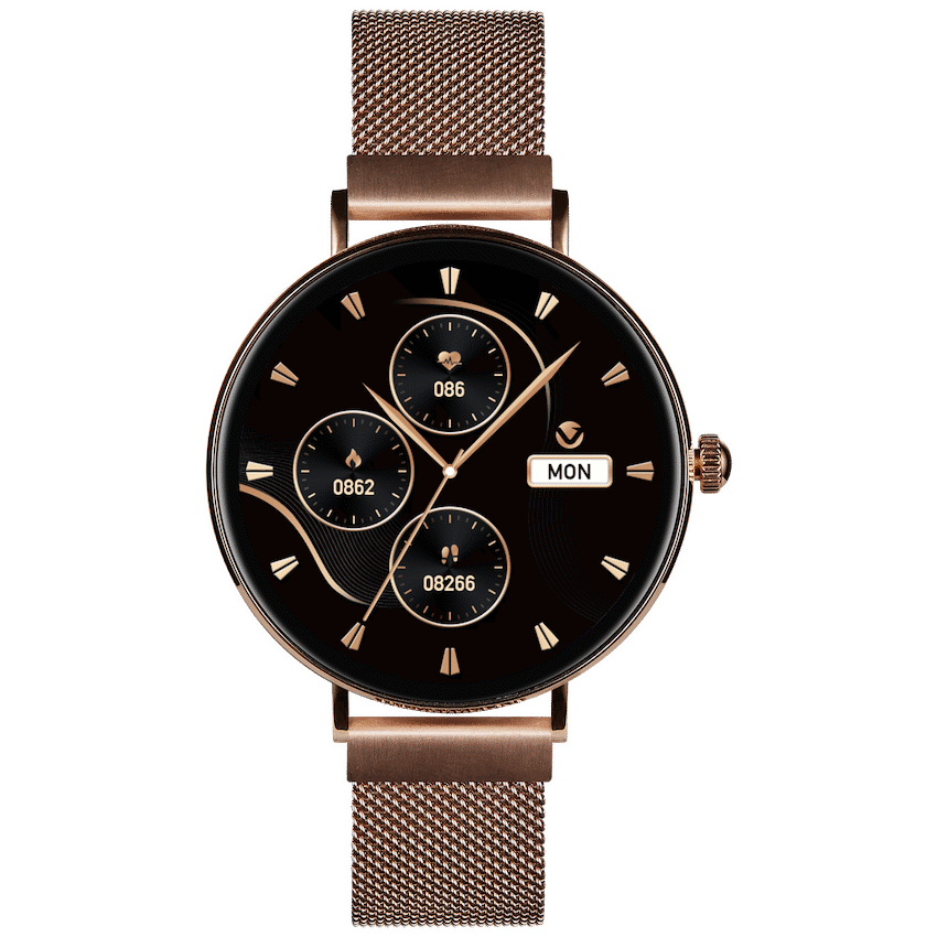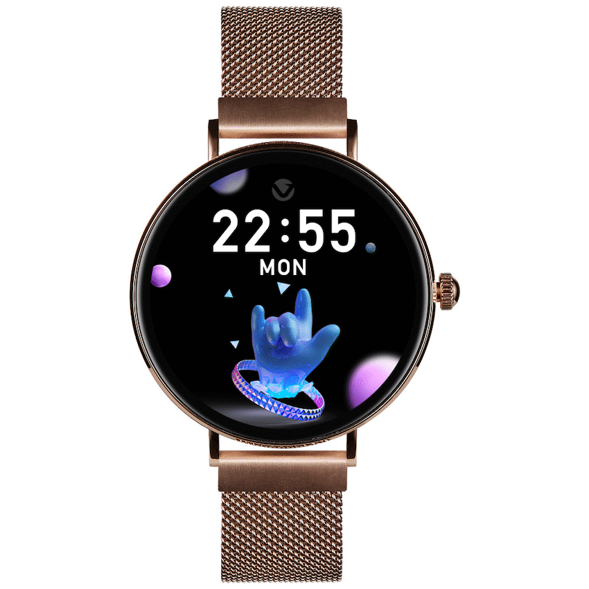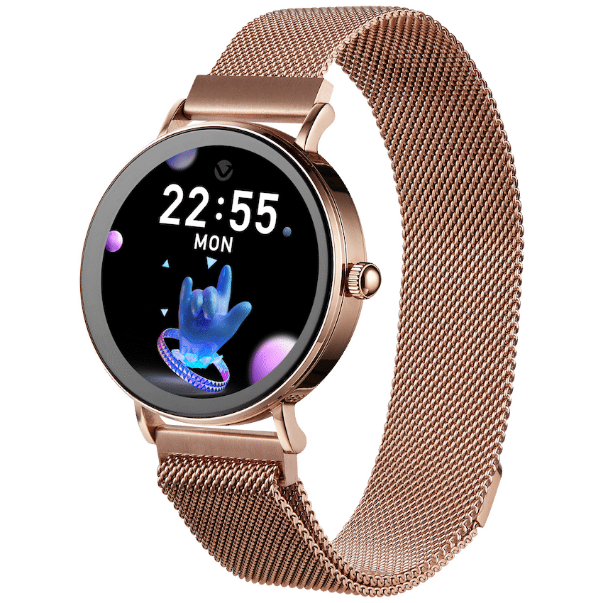 Volkano Valencia Series Ladies Smart Watch with Metal Mesh Strap – Gold, Elegant design with smart health, fitness, and calling features